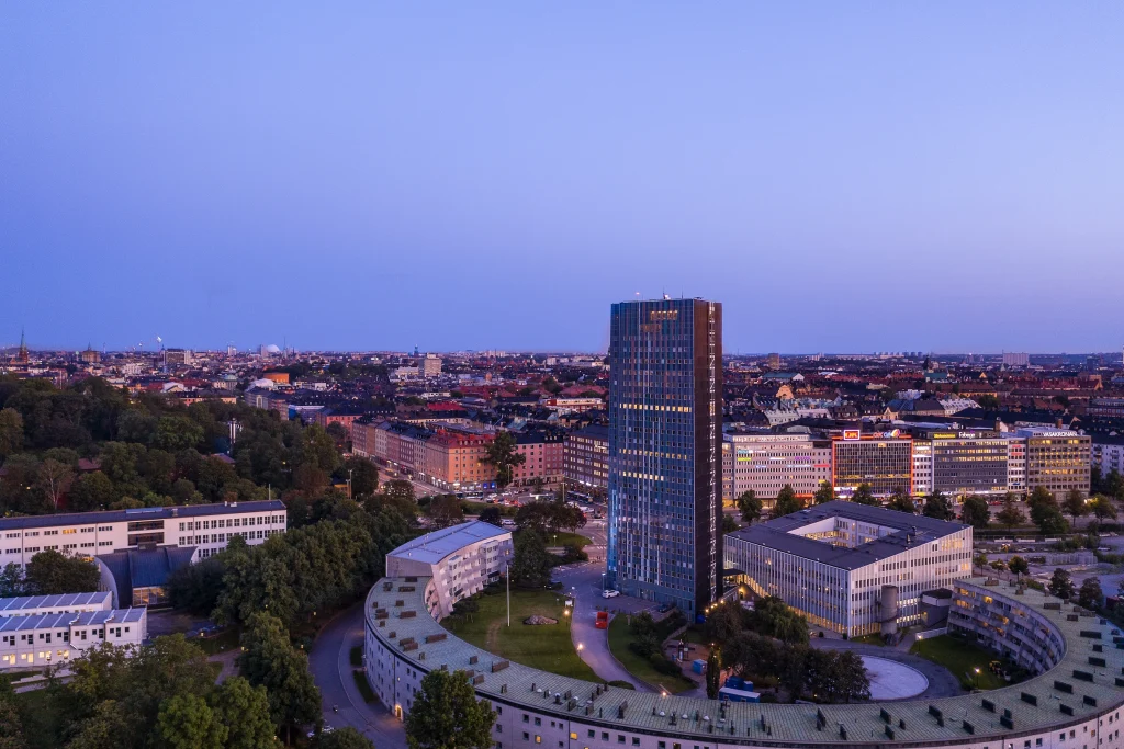 Byggnaden erbjuder även flertalet attraktiva konferens- och eventytor för externa besökare. Bland annat genom den imponerande festvåningen för 95 sittande gäster längst upp i huset med milsvid 360-utsikt över Stockholm.
